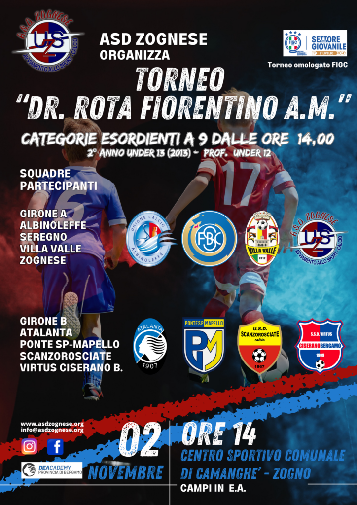 Il Torneo “Dr. Rota Fiorentino a.m.” è dedicato alla memoria del Dott. Fiorentino Rota, medico e figura storica della Zognese, storico presidente che con passione, competenza e generosità ha contribuito per molti anni alla crescita della società e del calcio giovanile a Zogno.